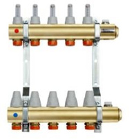 Rozdzielacz mosiężny z przepływomierzami i zaworami termostatycznymi 5 obwodów