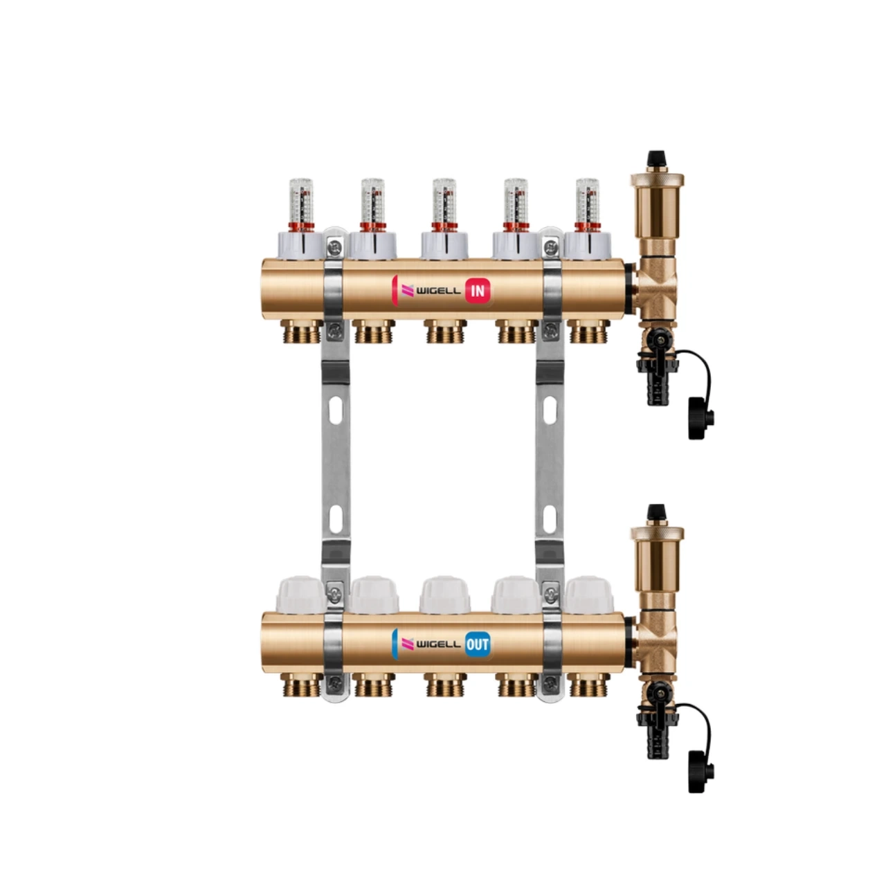 - Produkt: Rozdzielacz mosiężny podłogowy WIRO z odpowietrznikiem automatycznym 5 obwodów