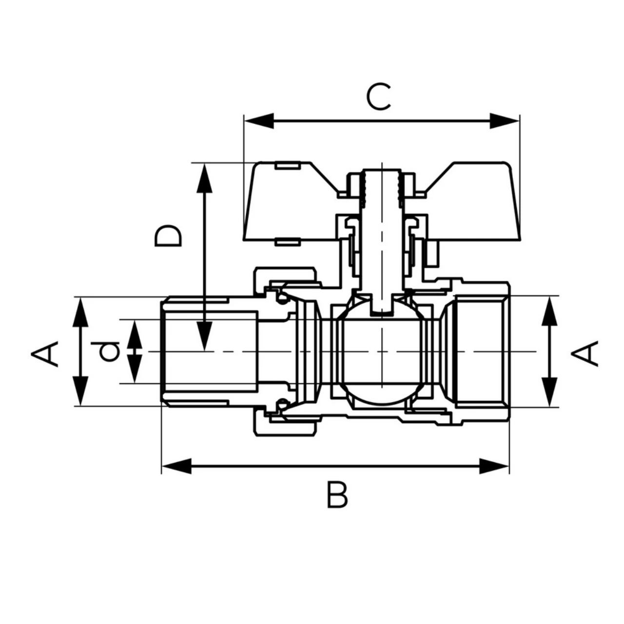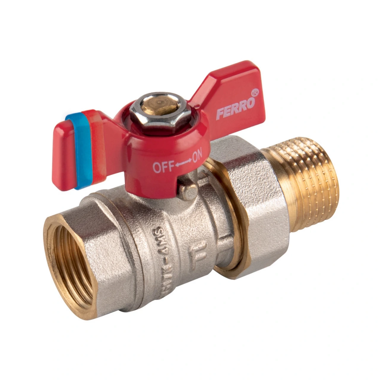 • Zawór kulowy nakrętno-wkrętny z motylkiem ze śrubunkiem 3/4 cala Ferro (nr. 2051)